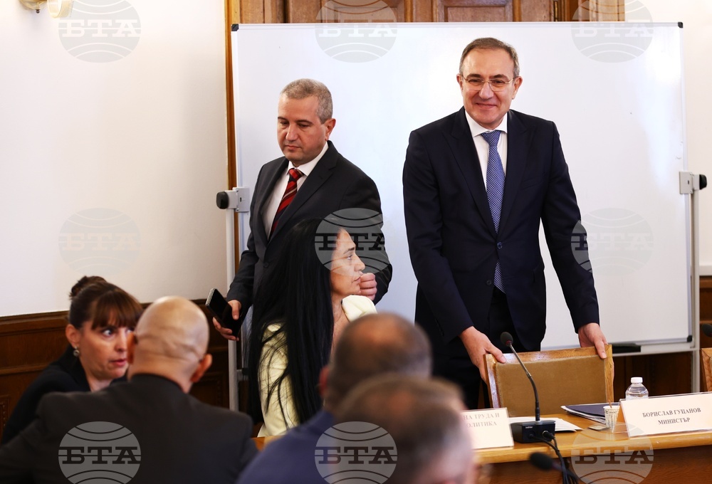 София (1 октомври 2025) Комисията по труда и социалната политика провежда заседание в сградата на Народното събрание. На снимката: зам.-министърът на труда и социалната политика Иван Кръстев и министърът на труда и социалната политика Борислав Гуцанов (вдясно).