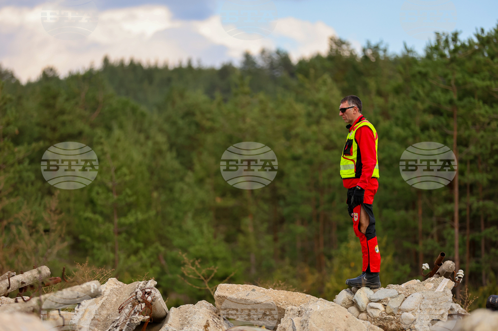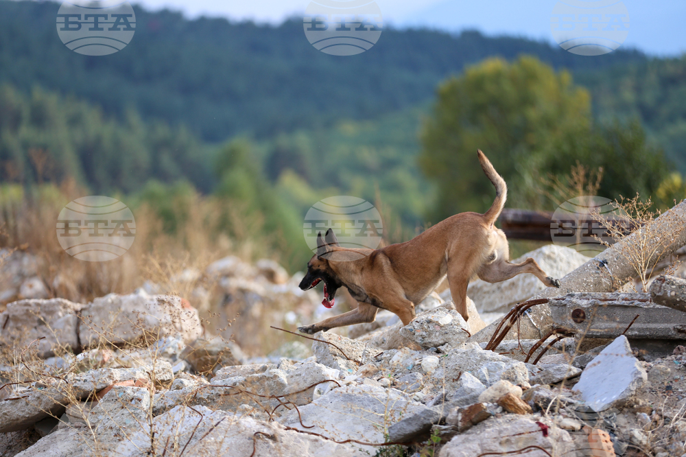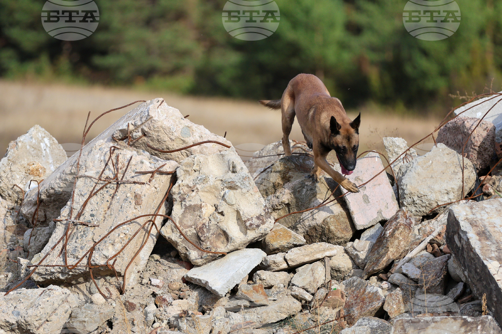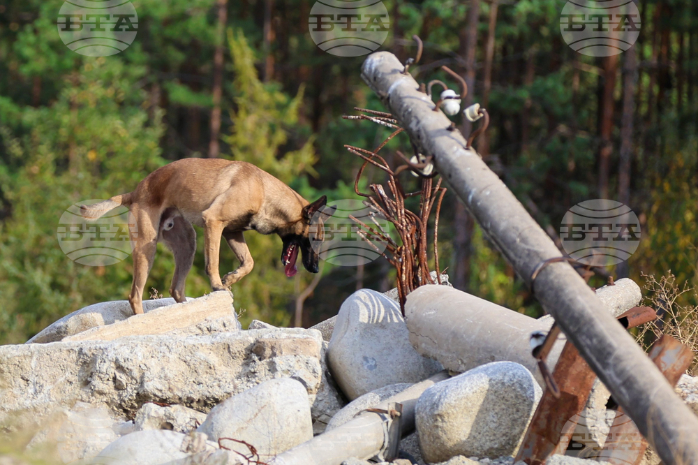 Разлог (1 октомври 2025) Обучение на спасителни кучета и техните водачи от Планинската спасителна служба се провежда на Учебен полигон за работа при бедствия, аварии и катастрофи край Разлог.