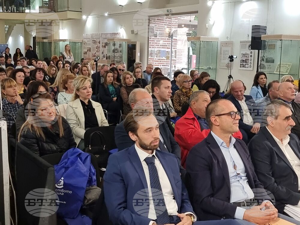 Ямбол (2 октомври 2025) Информационна среща, част от Националната информационна кампания за въвеждане на еврото, се повежда в Културно-информационен център "Безистен” в Ямбол. В събитието участват представители на държавната и местната власт, на бизнеса, неправителствения сектор и граждани. На снимката: кметът на Община Ямбол Валентин Ревански и зам.-министърът на земеделието и храните Лозана Василева.