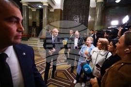София (2 октомври 2025) Президентът Румен Радев дава брифинг за медиите в сградата на Софийския университет „Св. Климент Охридски“.