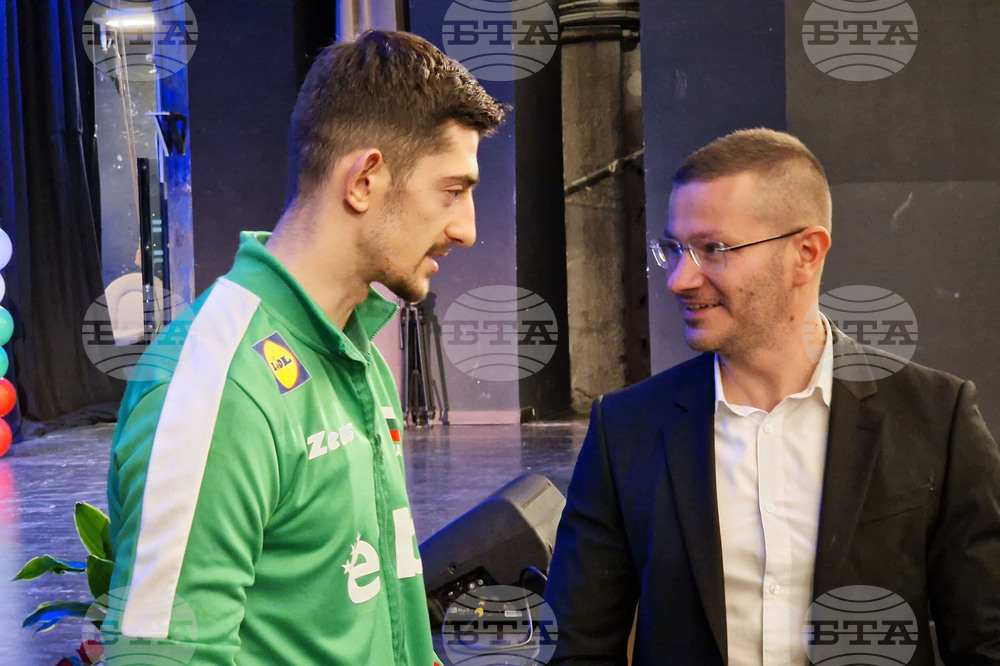 Стара Загора (3 октомври 2025) Ръководството на Професионалната гимназия по строителство, архитектура и геодезия (ПГСАГ) „Лубор Байер“ организира среща в Културен дом - Стара Загора с Руси Желев - вицешампион по волейбол от Световното първенство във Филипините през 2025 г., който е възпитаник на професионалната гимназия. На снимката: волейболистът Руси Желев и заместник-кметът на Община Стара Загора арх. Мартин Паскалев (вдясно).