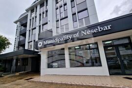 Несебър (3 октомври 2025) Представители на различни институции, от сформирания кризисен щаб относно наводненията и усложнената обстановка след проливните дъждове в Област Бургас, провеждат заседание в сградата на Община Несебър.