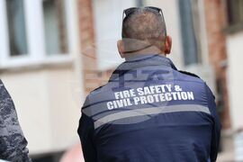 Несебър (3 октомври 2025) Представители на различни институции, от сформирания кризисен щаб относно наводненията и усложнената обстановка след проливните дъждове в Област Бургас, провеждат заседание в сградата на Община Несебър. На снимката: директорът на Главна дирекция "Пожарна безопасност и защита на населението" (ГДПБЗН) главен комисар Александър Джартов (втори вляво).