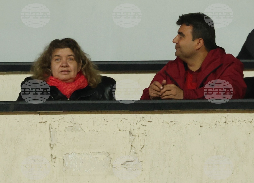 София (5 октомври 2025) Футболна среща от 11-ти кръг на Efbet лига се провежда между отборите на ЦСКА София и Лудогорец Разград на националния стадион “Васил Левски”. На снимката: председателят на Народното събрание Наталия Киселова (вляво).