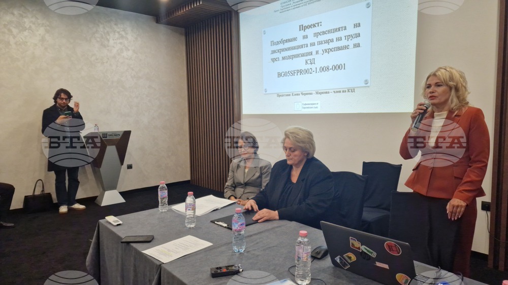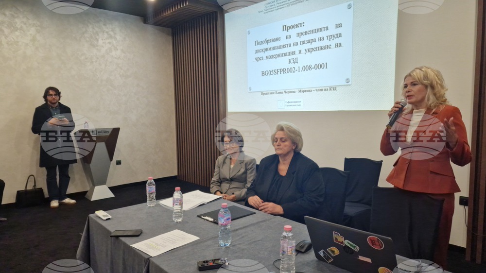 Шумен (6 октомври 2025) Кръгла маса по проект "Подобряване на превенцията на дискриминацията на пазара на труда чрез модернизация и укрепване на КЗД" се открива в хотел "Шумен".