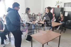 Разград (10 октомври 2025) Колекция от наследството на Анание Явашов показа Държавният архив в Разград. В Деня на отворените врати по повод професионалния празник на българския архивист – 10 октомври, екипът на разградската институция посрещна ученици от професионалните гимназии в града. Те разгледаха подредените в читалнята на архива документи от биографичен характер и от служебната дейност на Анание Явашов, чиято 170-годишнина бе чествана на първи октомври. На снимката: началникът на отдел „Държавен архив“ – Разград Габриела Михайлова.