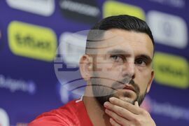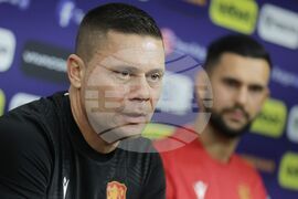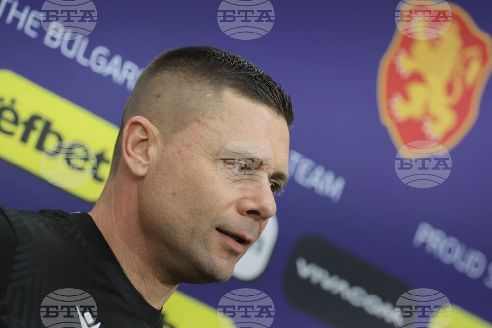 София (10 октомври 2025) Българският селекционер и вратарят Димитър Митов (на снимката) дават пресконференция, ден преди срещата между националните отбори по футбол на България и Турция от група Е на Световните квалификации.