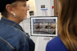 Бургас (13 октомври 2025) Благотворителна фотографска изложба в помощ на Драматичен театър „Адриана Будевска“ - Бургас се провежда в Културен дом „НХК“. Събитието е под надслов „Щастието и морето“. В експозицията участват произведения на фотографите Надя Драгиева, Минко Михайлов, Жени Маджарова-Петрова, Марияна Йорданова и Станислава Анестева. Събраните средства ще бъдат дарени за закупуване на осветителна и озвучителна техника за бургаския театър. Инициативата е на „Inner Wheel Club Burgas“ с подкрепата на Община Бургас. На снимката: инициаторът на събитието фотографът Надя Драгиева (вляво) и заместник-кметът по Култура и вероизповедания на Община Бургас Диана Саватева.