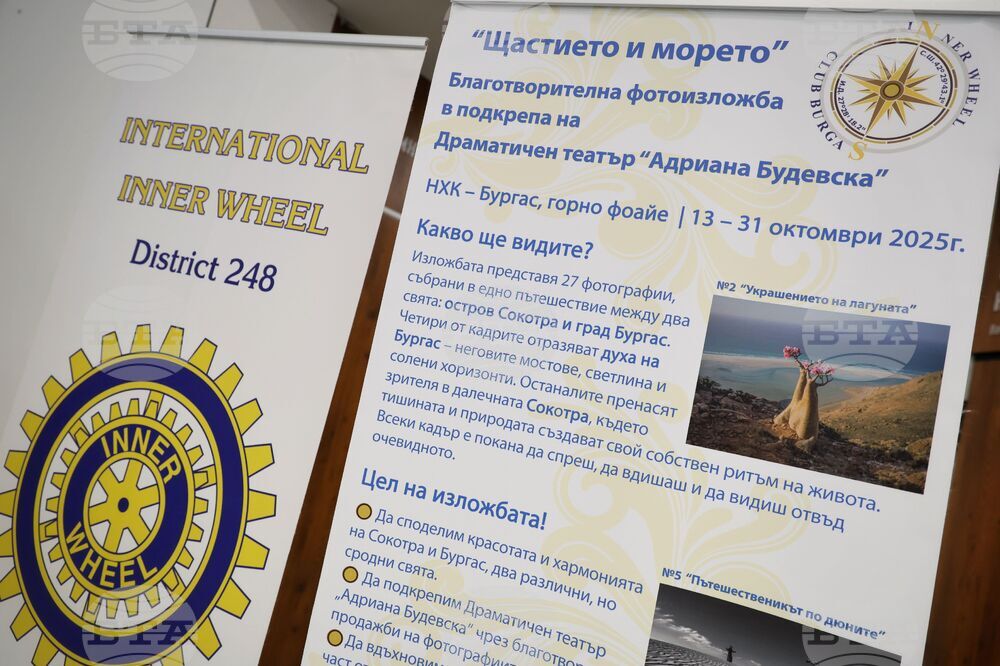 Бургас (13 октомври 2025) Благотворителна фотографска изложба в помощ на Драматичен театър „Адриана Будевска“ - Бургас се провежда в Културен дом „НХК“. Събитието е под надслов „Щастието и морето“. В експозицията участват произведения на фотографите Надя Драгиева, Минко Михайлов, Жени Маджарова-Петрова, Марияна Йорданова и Станислава Анестева. Събраните средства ще бъдат дарени за закупуване на осветителна и озвучителна техника за бургаския театър. Инициативата е на „Inner Wheel Club Burgas“ с подкрепата на Община Бургас.