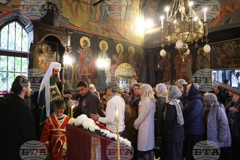 София (13 октомври 2025) Архиерейска вечерня за празника на преп. Параскева - Петка Търновска в столичния храм „Св. Петка“ предстоявана от Негово Светейшество Софийския митрополит и Български патриарх Даниил (вляво).