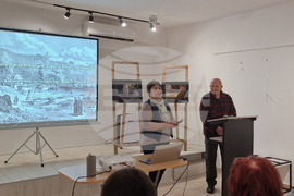 Исперих (17 октомври 2025) Нови открития и любопитни факти от теренните проучвания на пещерите в Археологическия резерват „Сборяново“ и Държавното ловно стопанство „Воден – Ири Хисар“ бяха представени на среща в Исперих. На снимката: директорът на Исторически музей в Исперих Теодора Василева и почетният президент на Балканския спелеоложки съюз Алексей Жалов.