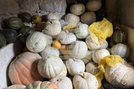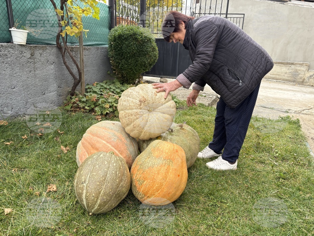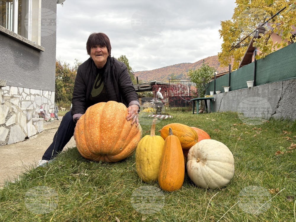 Самоков (22 октомври 2025) Местната жителка от Самоков Христина Вукова (на снимката), която има дългогодишен опит в градинарството, отгледа тази година около 50-килограмови тикви. Тя разказа, че всяка година засажда този плодов зеленчук, но тази година са необичайни. По думите ѝ тиквите са засадени между картофи, които е отгледала. Семето за тях ѝ е подарено от познат. Освен тикви Христина Вукова отглежда и други зеленчуци - лук, картофи, домати, а според нея тази година лукът също е с огромни размери.