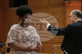 София (26 октомври 2025) В Концертен комплекс „България“ се провежда заключителен галаконцерт и награждаване на победителите в Международния конкурс за млади оперни певци „Опералия 2025". Престижният конкурс гостува за първи път у нас в периода от 20 до 26 октомври. Организатор е SY11 Events. Членове на журито са представители на оперни театри от Испания, Нидерландия, Германия, Австрия, Великобритания, Италия, САЩ, Белгия. На снимката: Джасмин Уайт – контраалт от САЩ.