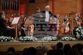 София (26 октомври 2025) В Концертен комплекс „България“ се провежда заключителен галаконцерт и награждаване на победителите в Международния конкурс за млади оперни певци „Опералия 2025". Престижният конкурс гостува за първи път у нас в периода от 20 до 26 октомври. Организатор е SY11 Events. Членове на журито са представители на оперни театри от Испания, Нидерландия, Германия, Австрия, Великобритания, Италия, САЩ, Белгия. На снимката: основателят на конкурса Пласидо Доминго (вдясно) и маестро Найден Тодоров, който дирижира финалния галаконцерт.