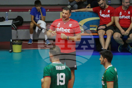 София (22 август 2022) В зала "Христо Ботев" волейболните отбори на България и Канада играят втората контрола помежду си. Мачовете са последни проверки и за двата отбора преди началото на Световното първенство в Полша и Словения. На снимката: Николай Желязков, треньор на България.