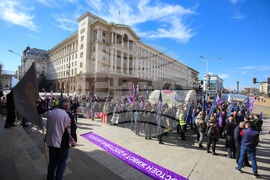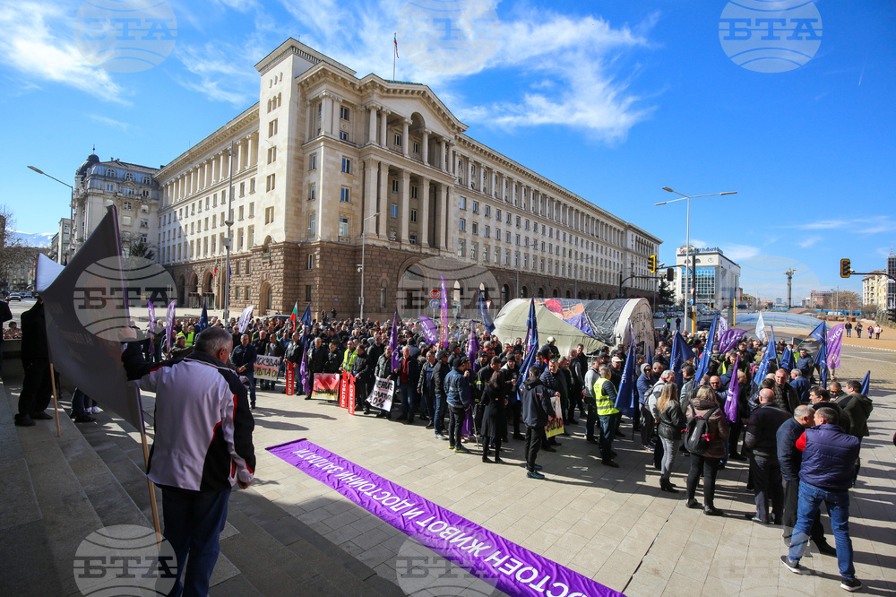 София (19 февруари 2022) Националният синдикат на пожарникарите и спасителите "Огнеборец" (НСПС „Огнеборец“) проведе национален протест - шествие в столицата. Шествие започна от площад „Независимост“, продължи до Министерство на финансите и приключи пред сградата на Народното събрание. Пресфото-БТА снимка: Цветомир Петров (ПБ)