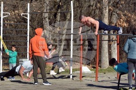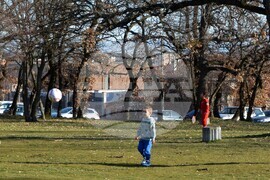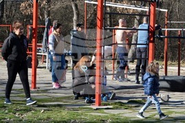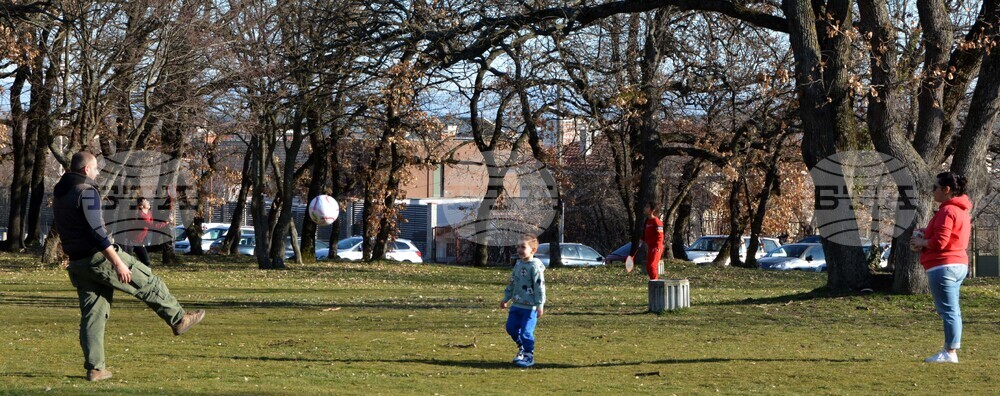 Хасково (19 февруари 2022) Хасковската областна метеорологична обсерватория днес отчете температурен рекорд от 17,7 градуса, с което се подобрява рекорда от 2007-ма година, кагато е било 17,5 градуса. Много от жителите на града с деца и домашни любимци предпочетоха разходките в крайградския парк "Кенана". Пресфото-БТА снимка: Ники Матанов (ПБ)
