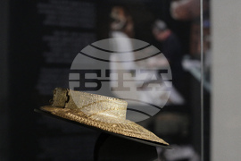 София (22 февруари 2022) Изцяло реставриран, изключително ценен, позлатен тракийски нагръдник е изложен в Националният исторически музей (НИМ). Безценната находка е открита от екип на д-р Георги Китов и Гаврил Лазов през 1995 г. при археологическото проучване на "Цвяткова могила" край Казанлък. През 2020 г. екип на НИМ под ръководството на Павлина Девлова осъществява графичната възстановка и идейната реконструкция на паметника. Пресфото - БТА снимка: Христо Касабов (ЕД)