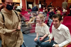София (13 март 2022) Премиерът Кирил Петков и министърът на културата Атанас Атанасов (ляво) присъстваха на премиерното представление на "Графиня Марица" в Музикалния театър.