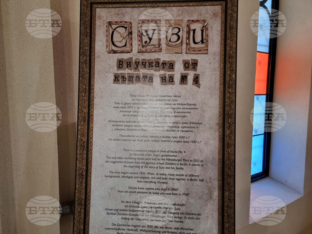 Видин (20 септември 2024) Изложбата „Сузи, внучката от къща № 4 и времето на скритите еврейски звезди“ се открива в Културен център „Жул Паскин“ във Видин. Експозицията е поглед към преживяното от едно еврейско дете и неговото семейство по време на националсоциалистическия режим в Германия и е създадена по едноименната графична новела на берлинската писателка, илюстраторка и учителка Биргита Бер. Инициативата е на Фондация „Културни перспективи“ и Фондация „Америка за България“.
