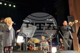 Разград (17 октомври 2024) Благодаря ви, за нас бе истински празник да сме тук, заедно с вас. С тези думи се обърна към публиката в Разград Хилда Казасян тази вечер в залата на Общинския културен център. Заедно с Плевенската филхармония певицата гостува в лудогорския град с концерт-спектакъла „Да обичаш Гершуин". На сцената редом с Хилда Казасян излязоха Теодосий Спасов, Васил Петров, Живко Петров - „най-финият пианист, който рисува, а не свири", както го представи певицата, тромпетистът Михаил Йосифов и контрабасистът Димитър Карамфилов. На барабаните беше Христо Йоцов, който е и автор на аранжиментите на песните в спектакъла.