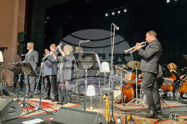 Разград (17 октомври 2024) Благодаря ви, за нас бе истински празник да сме тук, заедно с вас. С тези думи се обърна към публиката в Разград Хилда Казасян тази вечер в залата на Общинския културен център. Заедно с Плевенската филхармония певицата гостува в лудогорския град с концерт-спектакъла „Да обичаш Гершуин". На сцената редом с Хилда Казасян излязоха тромпетистът Михаил Йосифов и контрабасистът Димитър Карамфилов. На барабаните беше Христо Йоцов, който е и автор на аранжиментите на песните в спектакъла.
