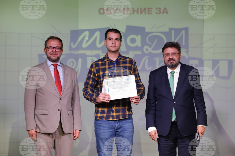 София (30 октомври 2024) Българската телеграфна агенция (БТА) в партньорство с Европейския парламент (ЕП) организира трето обучение за млади журналисти от националните и регионалните медии в България от 28 до 30 октомври. Събитието е на тема „Познавате ли европейските институции?“ и се провежда в Мултимедиен център на БТА - зала „МаксиМ“. В рамките на програмата участниците се запознават с функционирането на институциите на Европейския съюз, ценностите на ЕС, европейските избори и дезинформационните кампании около тях, ролята на медиите. Всеки от 14 одобрени за участие млади журналисти получава сертификат от Бюрото на Европейския парламент в София, а част от тях ще имат възможност да посетят и Европейския парламент в Брюксел през февруари. Обучения по програмата на ЕП се организират в над 20 държави от ЕС, като това е третото обучение по програмата в България. На снимката (от ляво надясно): ръководителят на Бюрото на ЕП в България Теодор Стойчев, Виолета Борисова от БНР, Хоризонт, генералният директор на БТА Кирил Вълчев.