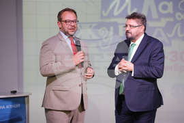 София (30 октомври 2024) Българската телеграфна агенция (БТА) в партньорство с Европейския парламент (ЕП) организира трето обучение за млади журналисти от националните и регионалните медии в България от 28 до 30 октомври. Събитието е на тема „Познавате ли европейските институции?“ и се провежда в Мултимедиен център на БТА - зала „МаксиМ“. В рамките на програмата участниците се запознават с функционирането на институциите на Европейския съюз, ценностите на ЕС, европейските избори и дезинформационните кампании около тях, ролята на медиите. Всеки от 14 одобрени за участие млади журналисти получава сертификат от Бюрото на Европейския парламент в София, а част от тях ще имат възможност да посетят и Европейския парламент в Брюксел през февруари. Обучения по програмата на ЕП се организират в над 20 държави от ЕС, като това е третото обучение по програмата в България. На снимката (от ляво надясно): ръководителят на Бюрото на ЕП в България Теодор Стойчев, генералният директор на БТА Кирил Вълчев.