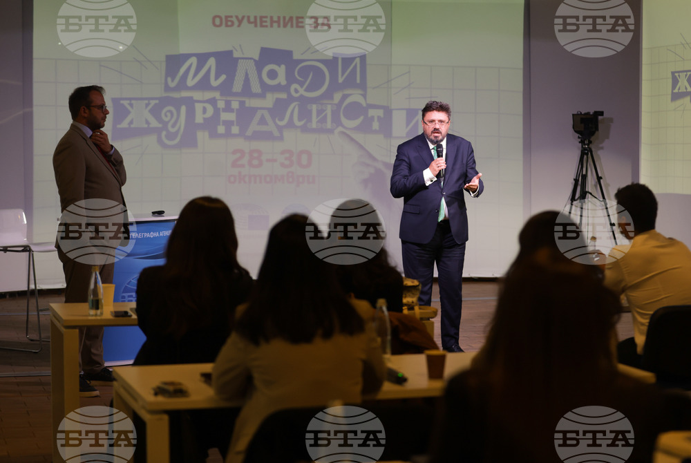 София (30 октомври 2024) Българската телеграфна агенция (БТА) в партньорство с Европейския парламент (ЕП) организира трето обучение за млади журналисти от националните и регионалните медии в България от 28 до 30 октомври. Събитието е на тема „Познавате ли европейските институции?“ и се провежда в Мултимедиен център на БТА - зала „МаксиМ“. В рамките на програмата участниците се запознават с функционирането на институциите на Европейския съюз, ценностите на ЕС, европейските избори и дезинформационните кампании около тях, ролята на медиите. Всеки от 14 одобрени за участие млади журналисти получава сертификат от Бюрото на Европейския парламент в София, а част от тях ще имат възможност да посетят и Европейския парламент в Брюксел през февруари. Обучения по програмата на ЕП се организират в над 20 държави от ЕС, като това е третото обучение по програмата в България. На снимката: генералният директор на БТА Кирил Вълчев.
