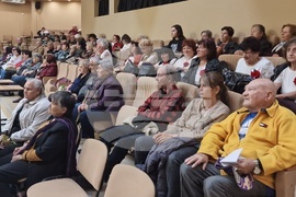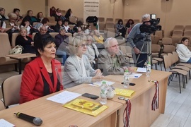 Попово (1 ноември 2024) Попово е домакин на Националния фестивал на песента и словото под надслов „Българийо, Родино моя“. Организатори на двудневния форум са Община Попово, Дом на културата „Димо Коларов“, Народно читалище „Съзнание – 1907“ и Сдружение за фолклор „Цветница“. Идеята на фестивала да се отдаде дължимото уважение на родната страна. На снимката: председателят на журито е именитият диригент д-р Ваня Монева (в средата), а членовете са културологът и основател на фестивала Петя Габровска (вляво) и актьорът Петър Петров (вдясно).