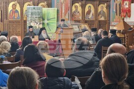 Варна (4 ноември 2024) Седмица на православната книга започва във Варна. Открива я Варненският и Великопреславски митрополит Йоан. Издания на Зографската света обител представя йеромонах Атанасий. Срещите се провеждат в храм „Св. прпмчк Прокопий Варненски“. На снимката: митрополит Йоан.