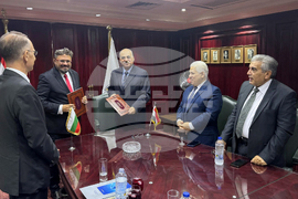 Кайро (18 Ноември 2024) Българската телеграфна агенция (БТА) и националната информационна агенция на Египет МЕНА (Middle East News Agency - Близкоизточна информационна агенция) започват за първи път обмяна на новини. Генералният директор на БТА Кирил Вълчев (втори отляво) и председателят и главен редактор на МЕНА Ахмед Камал (втори отдясно) подписаха споразумение за сътрудничество. На подписването в централата на МЕНА в египетската столица Кайро присъства и посланикът на България в Египет Деян Катрачев (вляво), който отбеляза пред МЕНА, че България и Египет се радват на приятелски отношения и отлично икономическо сътрудничество и медийните партньорства добавят важен принос към тези динамични отношения.