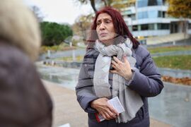 Бургас (21 ноември 2024) Представители на Регионална здравна инспекция (РЗИ) Бургас провеждат информационна кампания пред сградата на Културен дом "НХК". Инициативата е по повод Международния ден без тютюнопушене - 21 ноември. На снимката: главният инспектор в Отдел "Профилактика на болестите и промоция на здравето" към РЗИ Бургас д-р Полина Желева.