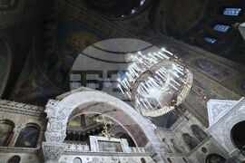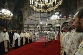 София (22 ноември 2024) Българската православна църква (БПЦ) отбелязва тържествено изпълването на 100 години от освещаването на патриаршеския ставропигиален храм-паметник "Св. Александър Невски". По този повод у нас пристигат делегации на всички Поместни православни църкви, за да съучастват в празника на родната ни Църква. В храма се провежда вечерно богослужение с петохлебие. На снимката: Българският патриарх и Софийски митрополит Даниил.