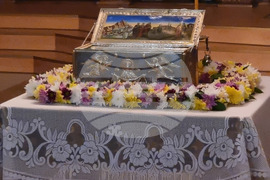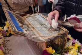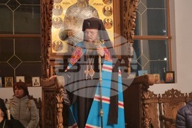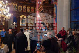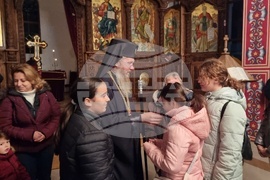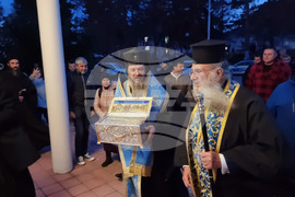 Тервел (22 ноември 2024) Миряните в Тервел посрещнаха честният пояс на Пресвета Богородица в храм "Св. Георги". Светинята бе донесена от Доростолския митрополит Яков (на снимката). Свещеници от околията отслужват Вечерня.