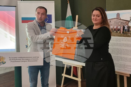 Скопие (22 ноември 2024) Изложба с фотографии, наречена "Босилеград преди и сега" и документалният филм "Твърди черупки" бяха представени днес в Българския културно-информационен център в Скопие. На снимката: Александър Димитров (вляво), кореспондент на БТА в Западните Покрайнини и главен редактор на „Глас Пресс“ , директорът на БКИЦ-Скопие Антония Велева (вдясно).