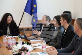 Варна (27 ноември 2024) Архитект Максим Недков и Дарин Дучев от „Морско око” представят в сградата на Областна администрация своята концепция за превръщане на останките от раннохристиянския манастир „Св. Богородица” в иновативен туристически обект. Манастирът е имал голямо просветителско значение в периода на българското покръстване. За това свидетелстват неговата големина, специални помещения, стратегическо разположение и изобилие от артефакти, сред които печати на княз Борис I Михаил и цар Петър I. В срещата участва и областният управител на Варна Андрияна Андреева (вляво).