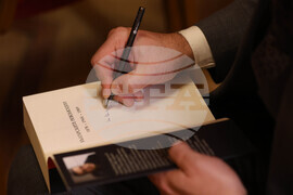 София (27 ноември 2024) Депутатът от ГЕРБ-СДС Тома Биков представя новата си книга „Българските контрареволюции и краят на идеологиите“ във Военния клуб в София. Творбата е издадена от A&T Publishing. Тя е продължение на предишната книга на Тома Биков - „Българските революции“, която излезе преди близо четири години. На снимката: конституционният съдия Атанас Семов.