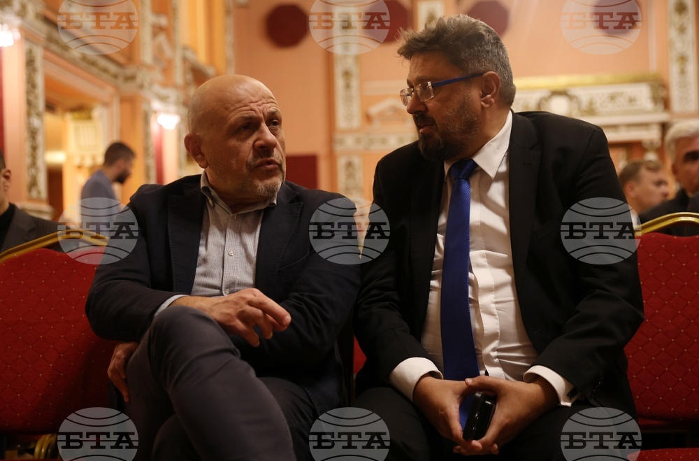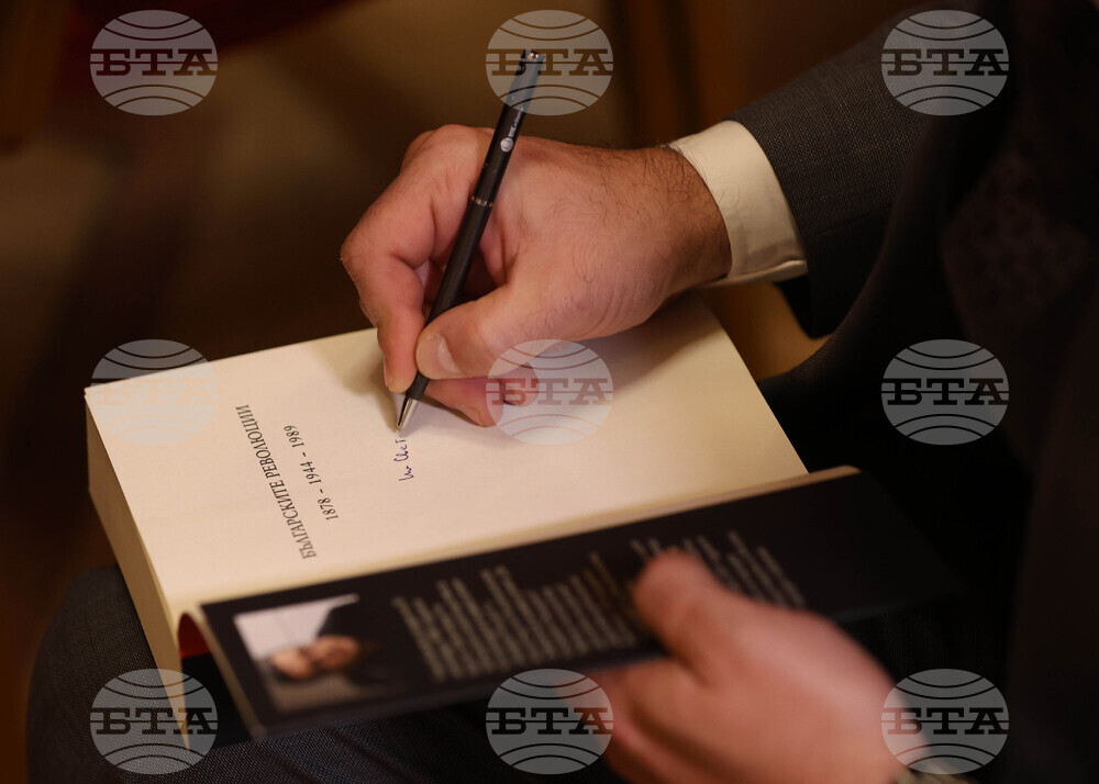 София (27 ноември 2024) Депутатът от ГЕРБ-СДС Тома Биков представя новата си книга „Българските контрареволюции и краят на идеологиите“ във Военния клуб в София. Творбата е издадена от A&T Publishing. Тя е продължение на предишната книга на Тома Биков - „Българските революции“, която излезе преди близо четири години. На снимката: научният ръководител на Центъра за конституционализъм и демокрация към „Галъп интернешънъл Болкан“ проф. дн Георги Близнашки (вляво) и научният секретар на Центъра за конституционализъм и демокрация към „Галъп интернешънъл Болкан“ доц. д-р Борислав Цеков.