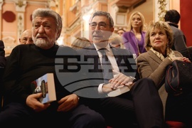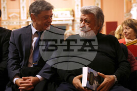 София (27 ноември 2024) Тома Биков (вдясно) представя новата си книга „Българските контрареволюции и краят на идеологиите“ във Военния клуб в София. Творбата е издадена от A&T Publishing. Тя е продължение на предишната книга на Тома Биков - „Българските революции“, която излезе преди близо четири години. Сред присъстващите на събитието е скулпторът Вежди Рашидов (вляво).