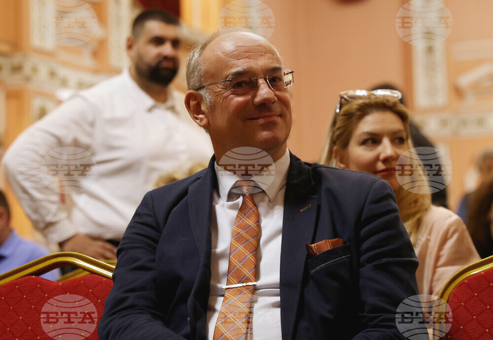 София (27 ноември 2024) Депутатът от ГЕРБ-СДС Тома Биков представя новата си книга „Българските контрареволюции и краят на идеологиите“ във Военния клуб в София. Творбата е издадена от A&T Publishing. Тя е продължение на предишната книга на Тома Биков - „Българските революции“, която излезе преди близо четири години. На снимката: скулпторът Вежди Рашидов.