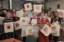Скопие (27 ноември 2024) Работилница под надслов "В света на изкуството" се проведе тази вечер в Българския Културно-информационен Център (БКИЦ) в Скопие, Северна Македония. Актрисата Гергана Змийчарова проведе учение за рисуване върху торбички.