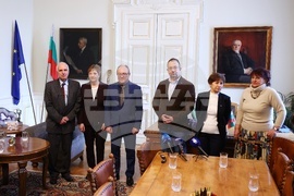 София (9 декември 2024) Церемония по встъпването в длъжност на новоизбрания председател на Българската академия на науките чл.-кор. Евелина Славчева се провежда в БАН. На снимката: На снимката (от ляво надясно): член-кореспондентът, доктор на техническите науки Стефан Хаджитодоров, новоизбраният председател на БАН Евелина Славчева, акад. Юлиан Ревалски, председателят на Общото събрание проф. Васил Киров, главният научен секретар на БАН проф. д-р Нели Косева и член-кореспондентът, доктор на биологическите науки Евдокия Пашева.