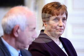 София (9 декември 2024) Церемония по встъпването в длъжност на новоизбрания председател на Българската академия на науките чл.-кор. Евелина Славчева (вляво) се провежда в БАН. На снимката: акад. Юлиан Ревалски (вдясно).