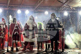 Казанлък (9 декември 2024) Стотици деца и родители, жители и гости на Казанлък се включиха в обратното броене до запалването на светлините на коледната елха на централния площад “Севтополис”. Празничната програма включваше много танци и веселие, а малчуганите бяха поздравени лично от дядо Коледа, който обеща, че никое дете няма да остане без подарък. На снимката: кметът на община Казанлък Галина Стоянова.