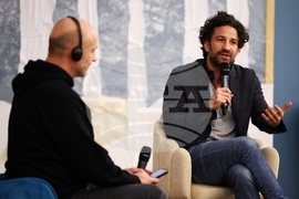София (10 декември 2024) Петдесет и първото издание на Софийския международен панаир на книгата се провежда в Националния дворец на културата (НДК). Среща с писателя Мигел Бонфоа (на снимката). Модератор на разговора е Георги Тошев.