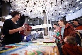 София (10 декември 2024) Петдесет и първото издание на Софийския международен панаир на книгата се провежда в Националния дворец на културата (НДК). На снимката: на щанд №325 се провежда среща с автограф с Мария Донева. Представя „Жанет 45”.
