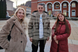 Рудозем (10 декември 2024) Филмът „Сватба“ по едноименния разказ на Николай Хайтов стартира в страната с пътуващо кино и индивидуални прожекции. Днес филмът се прожектира в Рудозем и киносалонът в Народно читалище „Христо Ботев 2000“ бе препълнен с желаещи да се докоснат до творчеството на Хайтов. Утре лентата ще бъде показана пред жителите на Чепеларе. На снимката: режисьорът на "Сватба" Магдалена Ралчева (вляво), актьорът Велислав Павлов и художникът Ивелина Минева