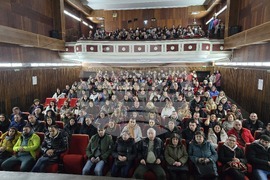 Рудозем (10 декември 2024) Филмът „Сватба“ по едноименния разказ на Николай Хайтов стартира в страната с пътуващо кино и индивидуални прожекции. Днес филмът се прожектира в Рудозем и киносалонът в Народно читалище „Христо Ботев 2000“ бе препълнен с желаещи да се докоснат до творчеството на Хайтов. Утре лентата ще бъде показана пред жителите на Чепеларе. На снимката: режисьорът на "Сватба" Магдалена Ралчева.