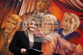 София (10 декември 2024) Откриване на Петдесет и първия Софийски международен панаир на книгата се провежда в зала 7 на Националния дворец на културата (НДК). На снимката: Петя Дикова, водеща.